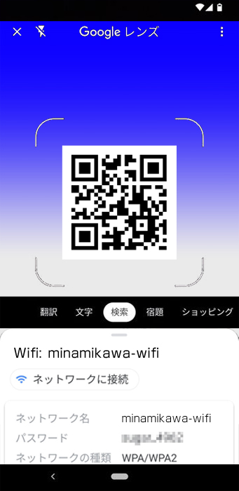 Android(スマートフォン)を使用されている方は、Androidのバージョン(スマートフォンの中身の新しさを示します)や機種(製造元)によって、最初からインストールされているカメラアプリケーションでQRコードが読み取れなかったり、QRコードによるWi-Fiの接続が上手くいかなかったりすることがあります。