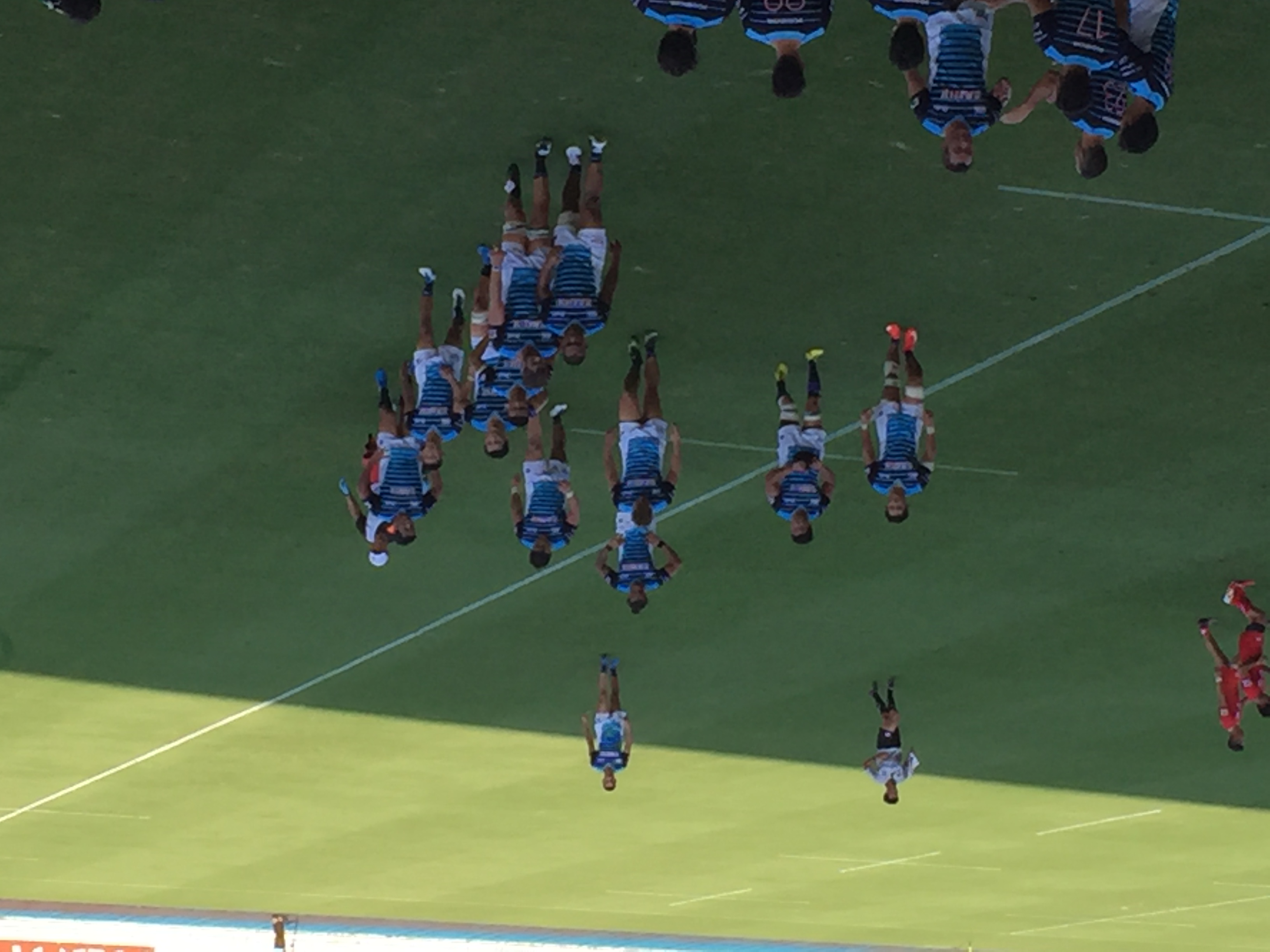 試合開始直後から、コカコーラにプレッシャーをかけ、相手のペナルティーからラインアウトを獲得。一気に敵陣に攻め込むとモールを押し込み、HO星本泰憲選手がインゴールに飛び込み、ブルースは今季の初得点をあげた。その後、スクラムでも相手をプッシュしペナルティーキックを獲得。早速、今季注目の”セットピース”からの攻撃を見せる場面が訪れた中でも、落ち着いて自分たちの強さを見せつけ、ブルースは序盤から相手を圧倒していった。前半、立て続けに相手エリアで有利に立ち、連続で得点していくチームの姿に、新シーズンに向ける”勢い”と新戦力との”融合”を遂げた「新生ブルース」の姿を見ることができた。開幕戦独特の緊張感が残る中、試合中盤にかけてペナルティーを犯した方に流れが傾く状況の中でも、スクラムで流れを引き戻し、後半には2015W杯でも活躍したカーンヘ・スケス選手の驚異的なトライで点差を広げ、38-22で開幕戦の勝利を飾った。
