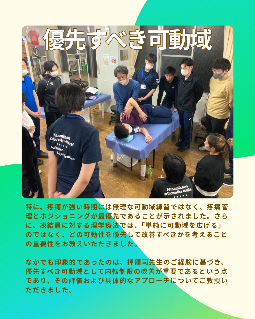 【院内勉強会レポート】『凍結肩の治療戦略〜獲得すべき可動性の優先順位を考える〜』を開催しました!