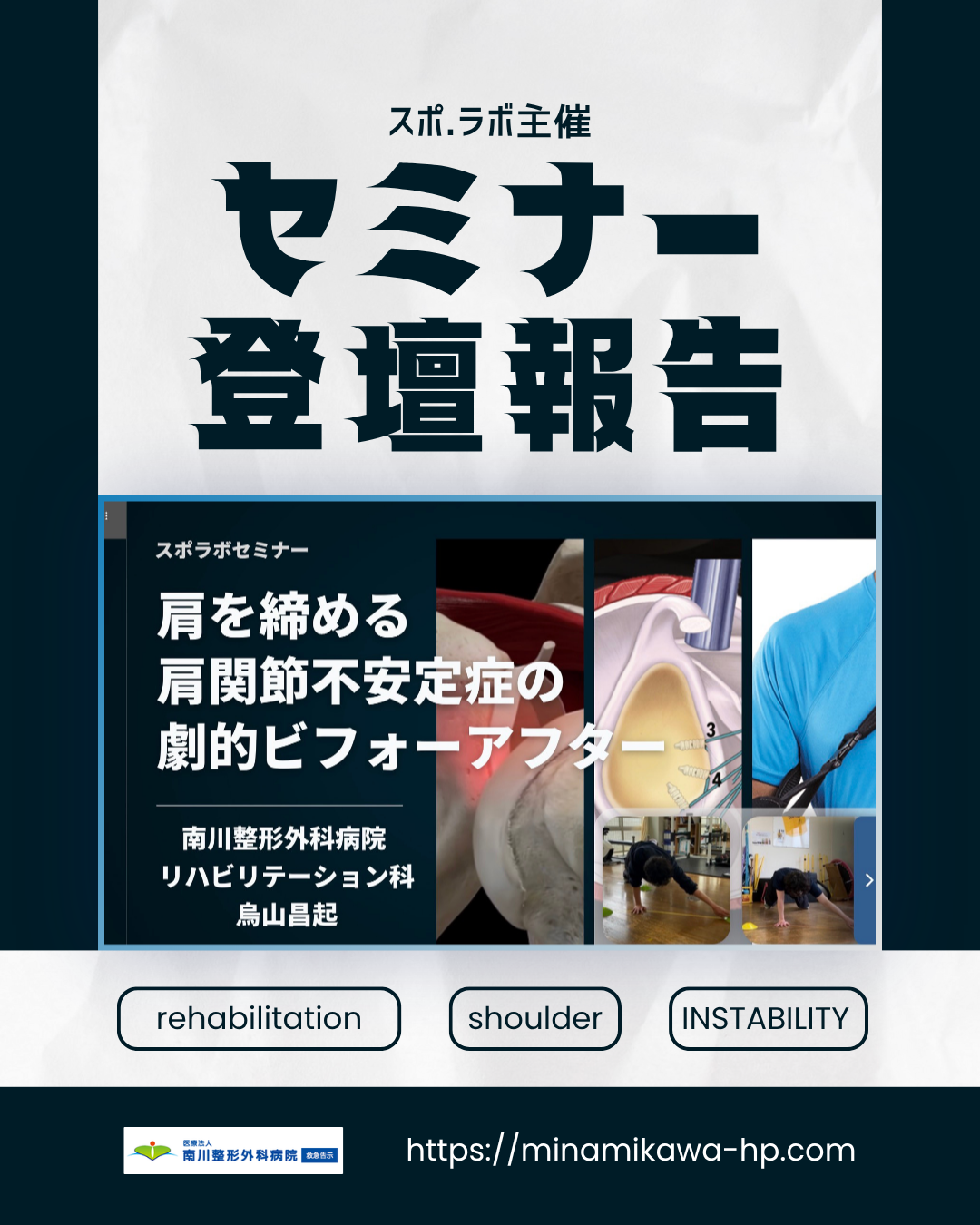 【登壇情報】スポ.ラボ主催のオンラインセミナーとして、当院リハビリテーション科 理学療法士 烏山昌起が講師を務めました。