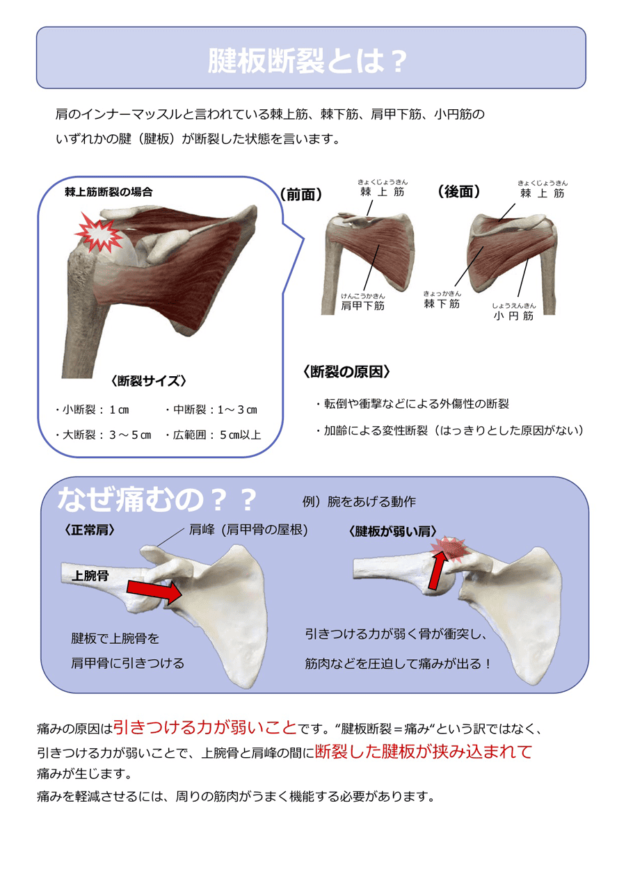 肩に痛みがあって不安な方は当院の腱板断裂のパンフレットをご参照ください。