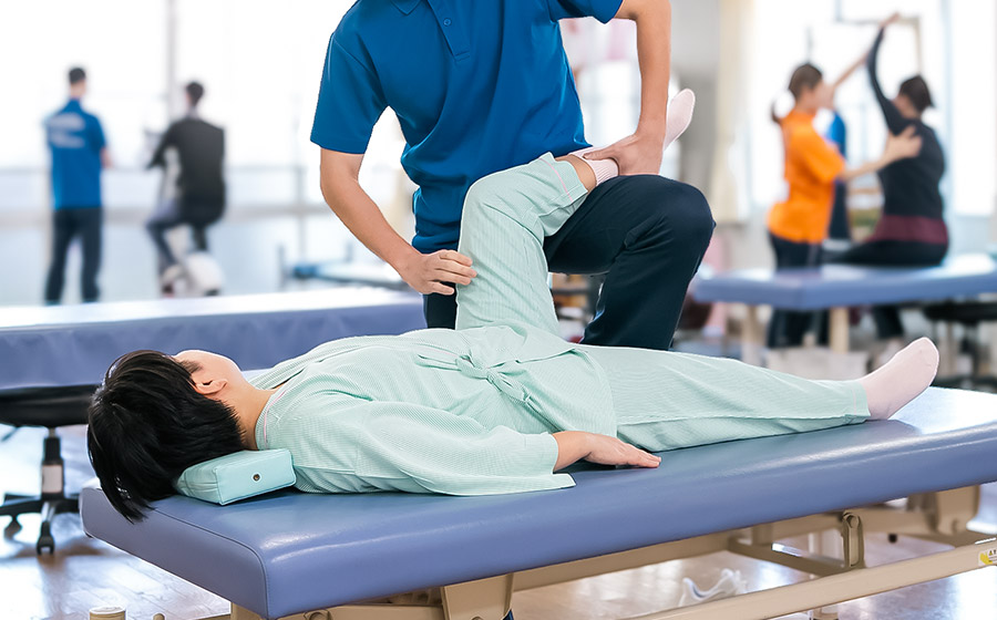 当院では、「地域No.1のリハビリを目指す」というビジョンを掲げ、患者さんが安心して治療を受けられるリハビリ室を目指しております。スタッフが着用しているユニフォームの背中には、ホテルや飲食店などで用いられているミシュランの5つ星がデザインされており、医療だけでなく、サービスの提供にも力を入れています。