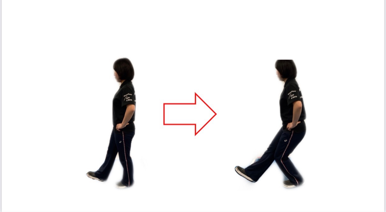 なるべく足は挙上するようにします。