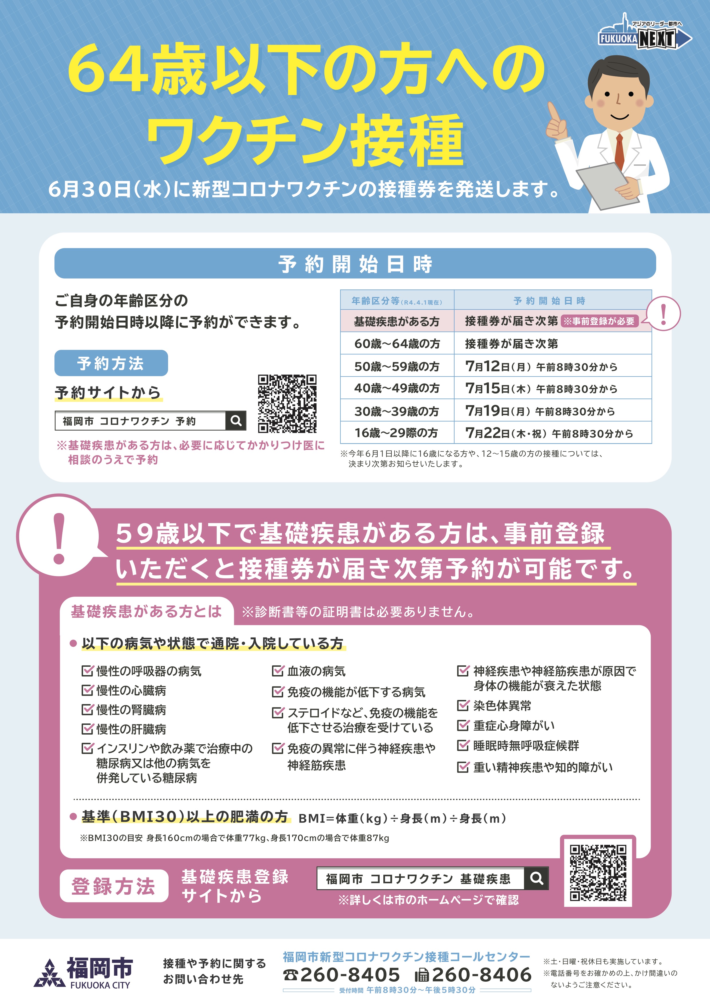 64歳以下の方への新型コロナウイルスワクチン接種予約について。
