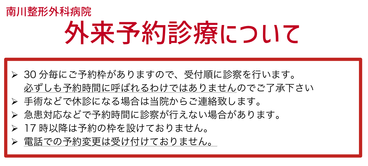 外来受診時の待ち時間対策のために、令和3年10月より以下の整形外科医における予約診療を開始致します。