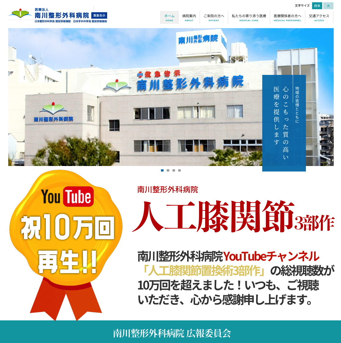 【お知らせ】南川整形外科病院 YouTubeチャンネル「人工膝関節置換術3部作」の総視聴数が10万回を超えました!