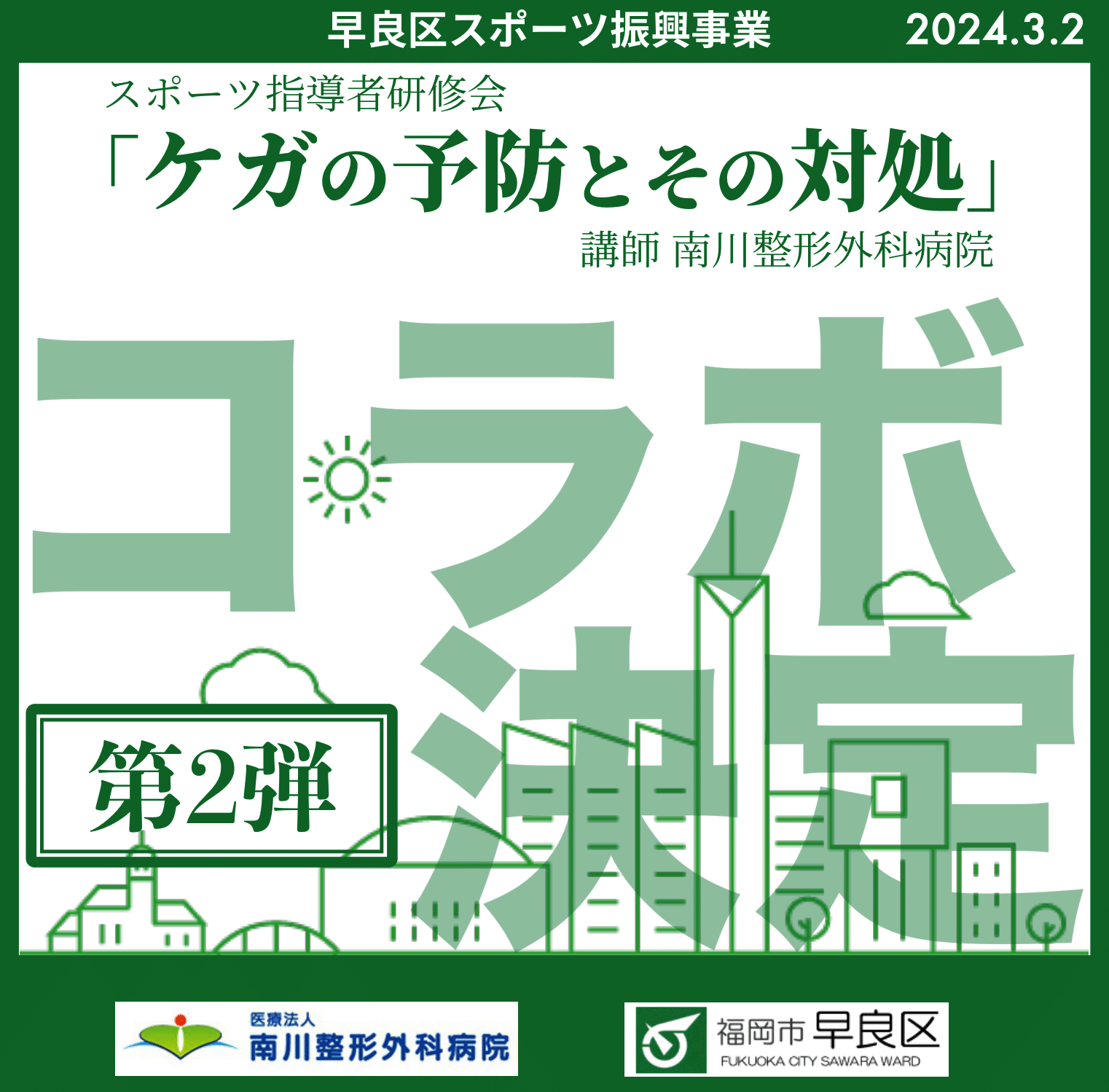 早良区スポーツ振興事業「スポーツ指導者研修会」に、南川整形外科病院が講師として協力するコラボ企画の第2弾がスタートします!