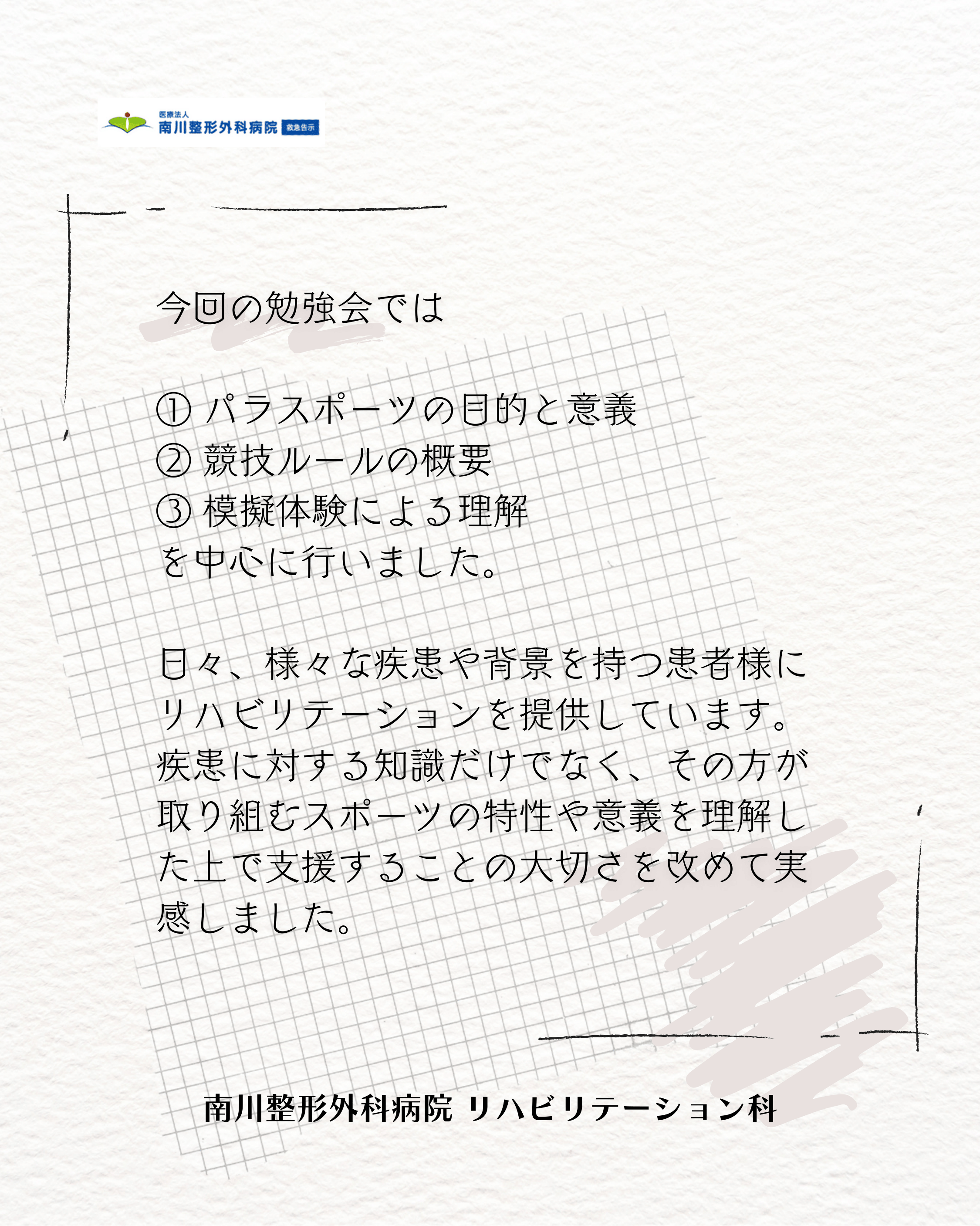 【院内勉強会】院内勉強会レポート「パラスポーツについて」