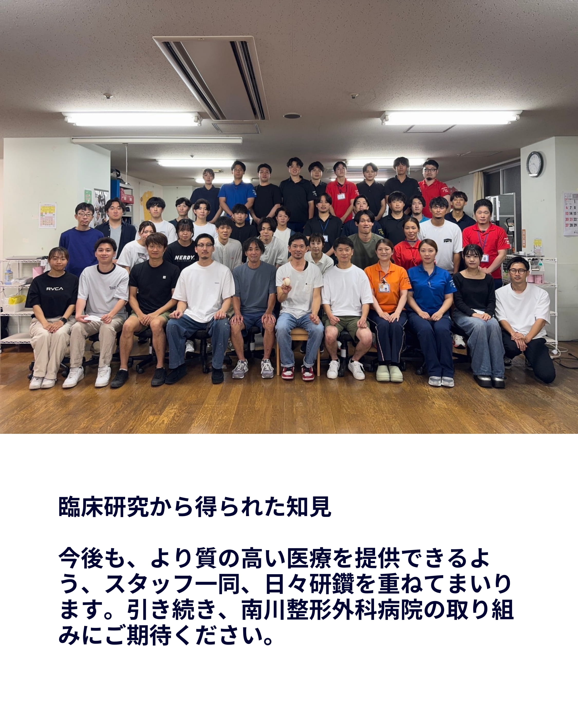 今後も、より質の高い医療を提供できるよう、スタッフ一同、日々研鑽を重ねてまいります。引き続き、南川整形外科病院の取り組みにご期待ください。