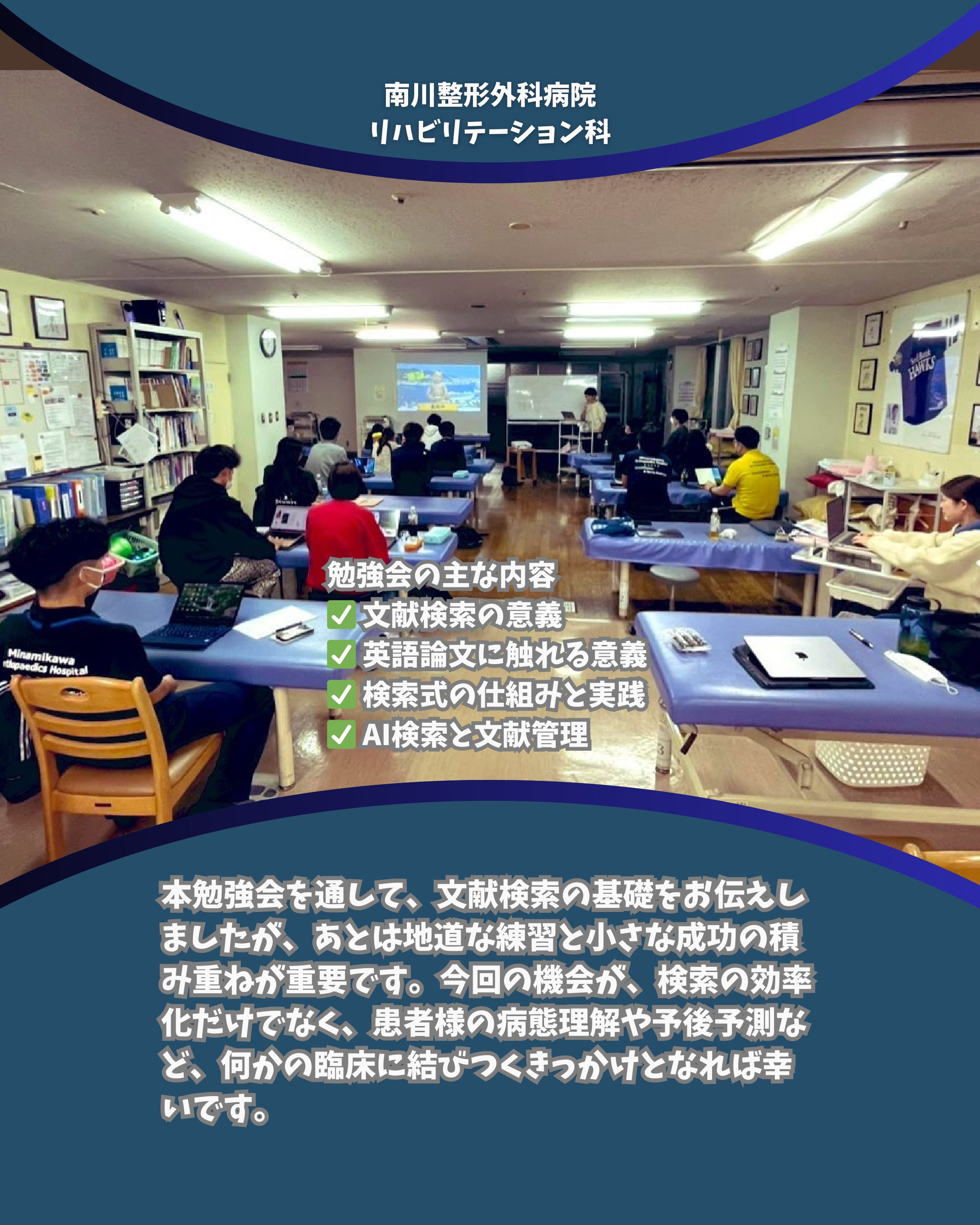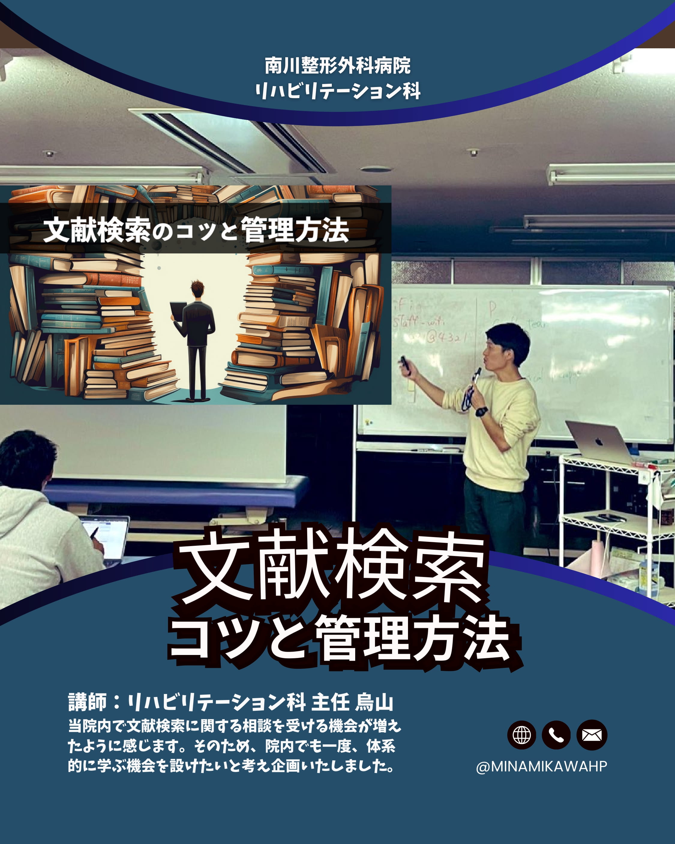 【院内勉強会レポート】「文献検索のコツと管理方法」リハビリテーション科 烏山による院内勉強会を開催いたしました!