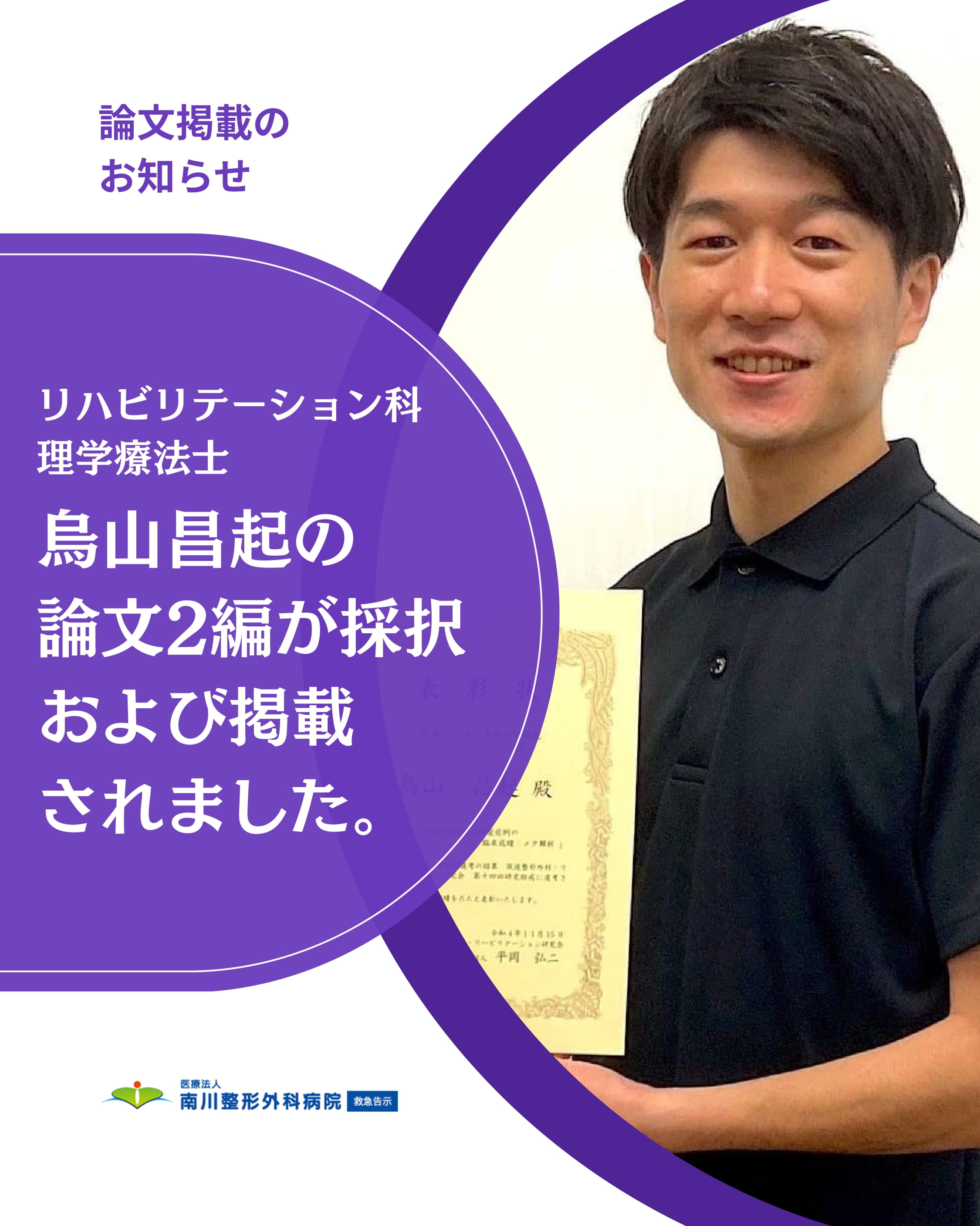 リハビリテーション科の理学療法士、烏山昌起の論文2編が採択および掲載されました。