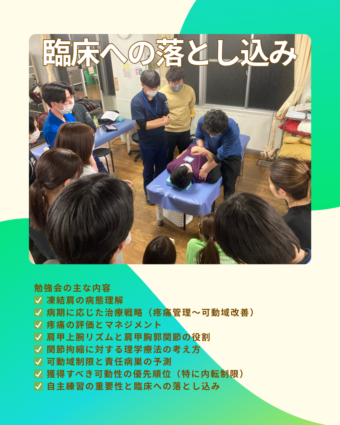 【院内勉強会レポート】『凍結肩の治療戦略〜獲得すべき可動性の優先順位を考える〜』を開催しました!