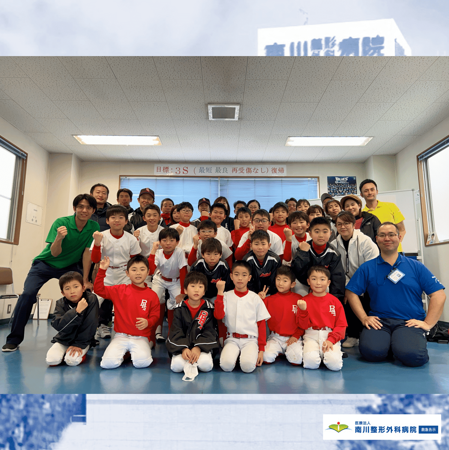皆さまこんにちは!南川整形外科病院の地域貢献活動の一環として、姪北ブラックベイスターズの皆さんと保護者の方々をお招きして「スポーツ障害予防教室」を開催しました!