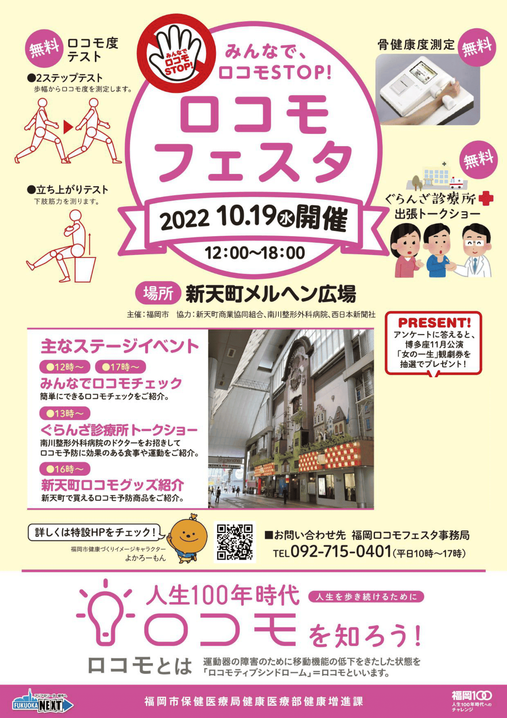 #福岡市 #福岡市保健医療局健康医療部健康推進課 #福岡市保健福祉総合計画 #ロコモティブシンドローム #ロコモ #ロコモフェスタ #ロコモチェック #みんなでロコモSTOP! #人生100年時代 #運動器 #移動機能 #新天町 #新天町メルヘン広場 #西日本新聞社 #ぐらんざ #ぐらんざ診療所 #南川整形外科病院 #福岡 #整形外科 #肩の専門医 #膝の専門医 #手の専門医 #福岡市西区 #姪浜 #医療従事者 #stopnextwave #encouragemyfriend