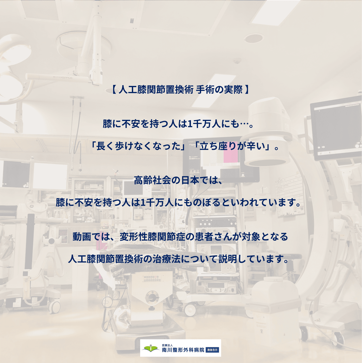 南川整形外科病院のYouTubeチャンネルにて公開中の「1分でわかる人工膝関節置換術手術の実際」が、ついに10万回再生を突破しました!皆様からのご視聴、心から感謝申し上げます!
