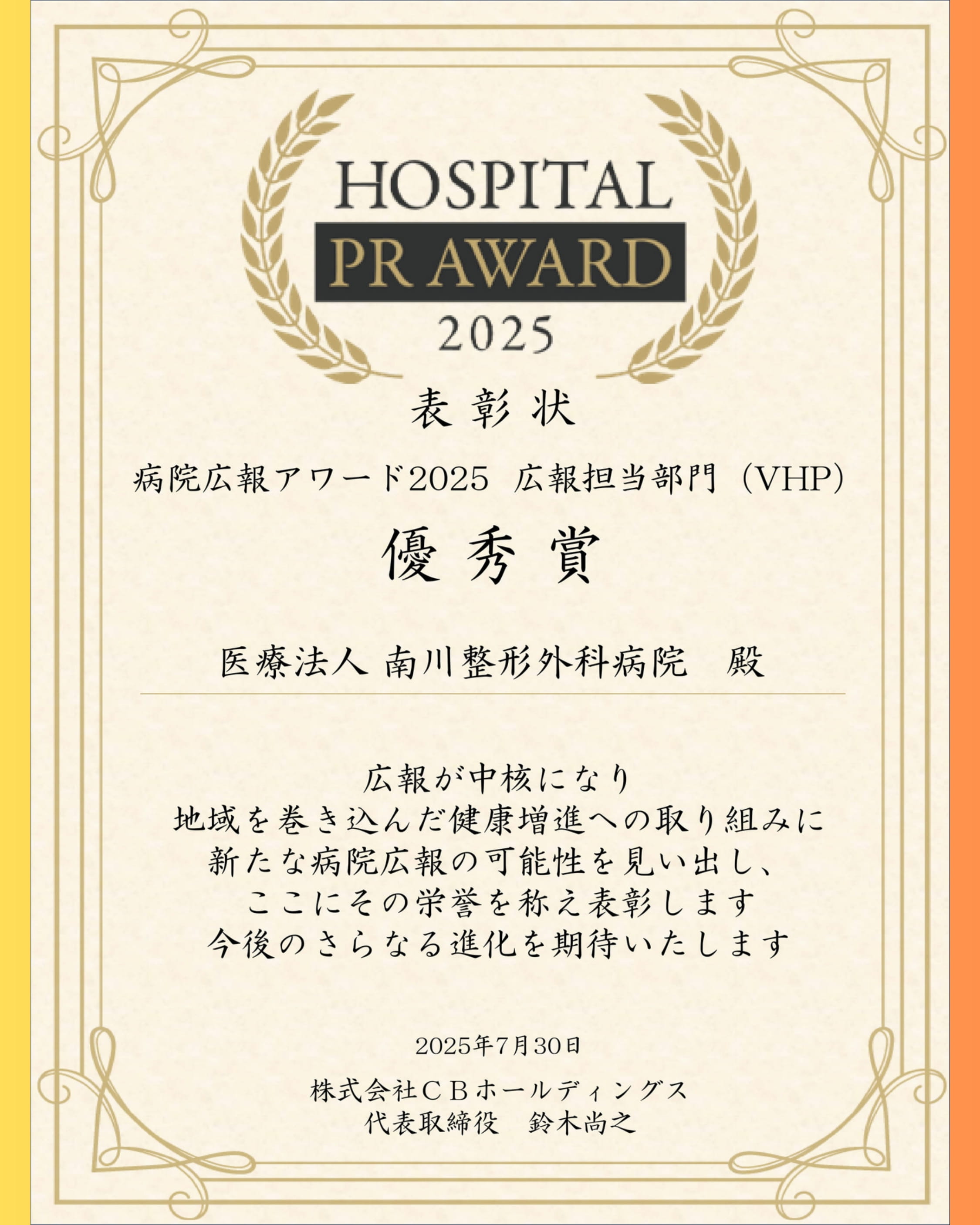【地域貢献活動】病院広報アワード2025 | VHP部門 優秀賞を受賞しました!