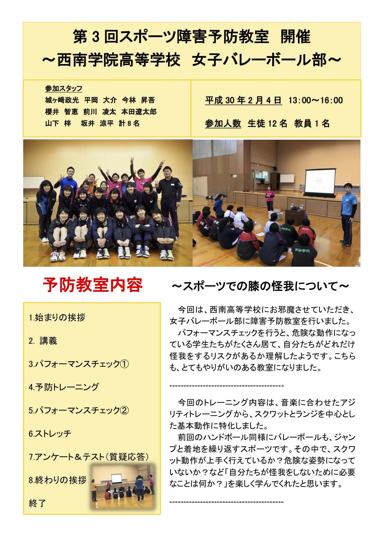 第3回 スポーツ障害予防教室 開催 (西南学院高 女子バレーボール部)(616.63Kb)
