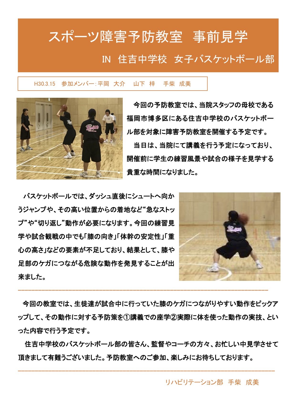 第4回 スポーツ障害予防教室 事前見学 (住吉中 女子バスケットボール部)(154.61Kb)