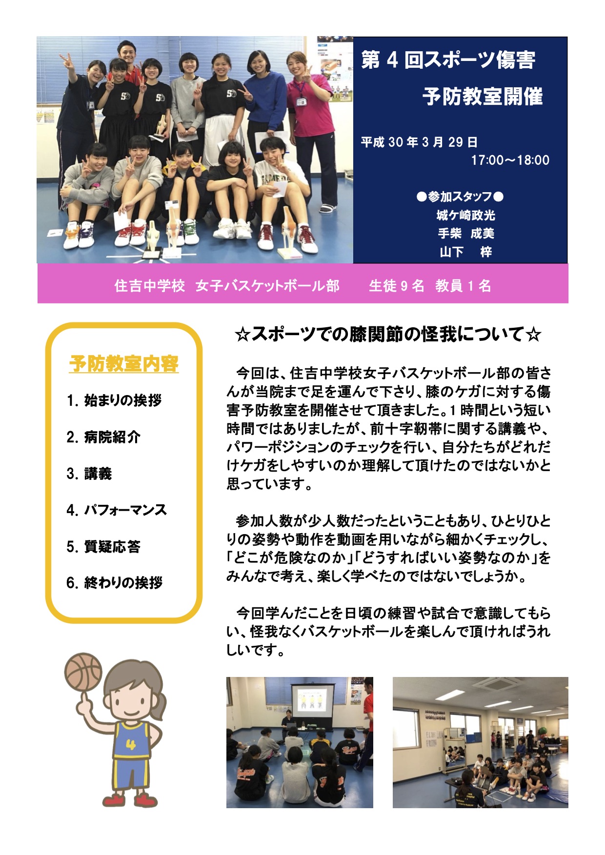 第4回 スポーツ障害予防教室 開催 (住吉中 女子バスケットボール部)(473.87Kb)