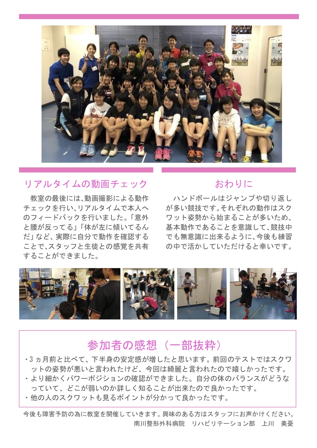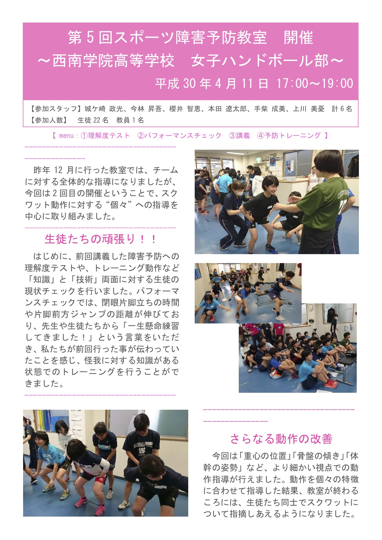 第5回 スポーツ障害予防教室 開催 (西南学院高 女子ハンドボール部)(383.64Kb)