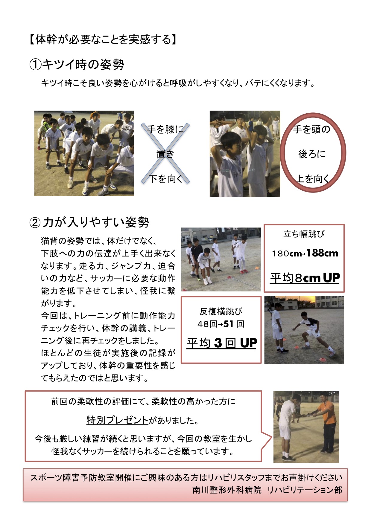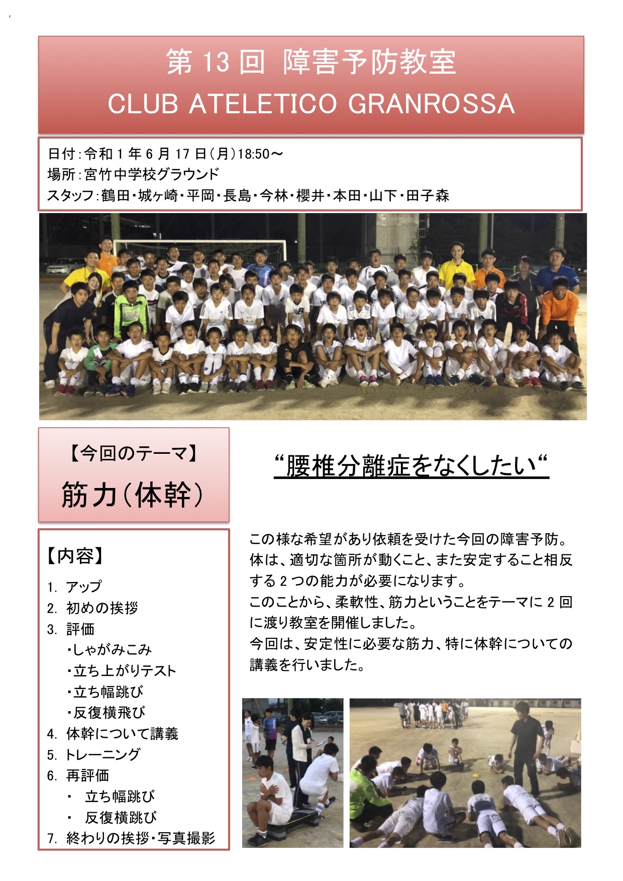 【地域貢献活動】第13回 スポーツ障害予防教室 開催 (CLUB ATELETICO GRANROSSA)
