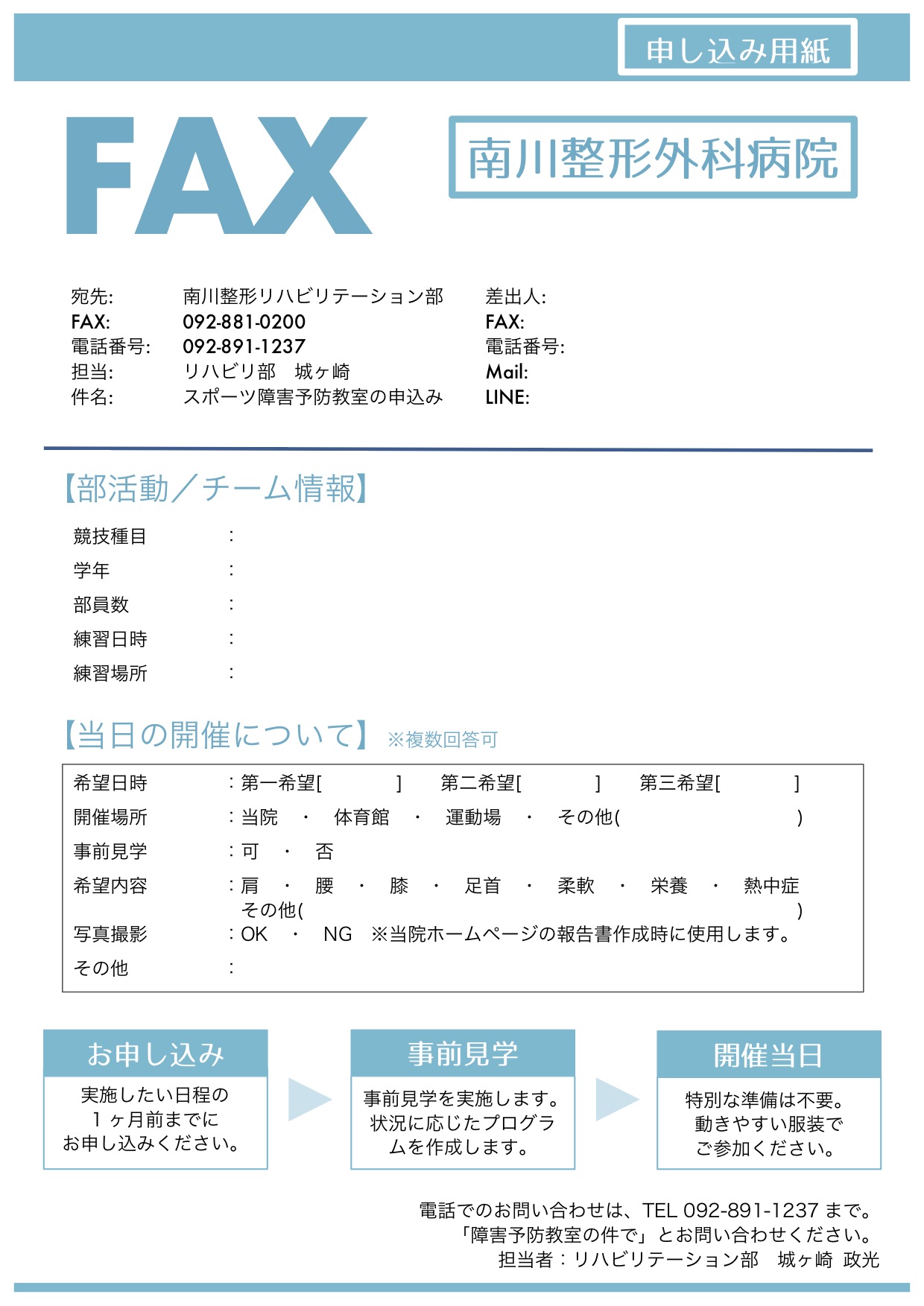 【院外活動】スポーツ障害予防教室の申し込みについて。