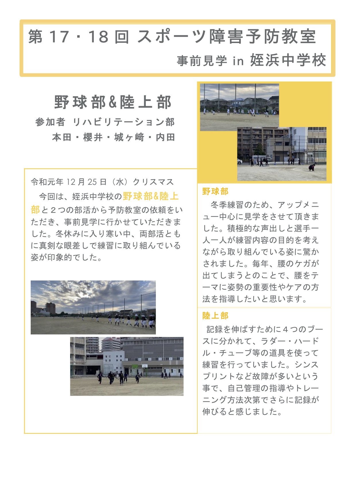 第17・18回 スポーツ障害予防教室 事前見学 (姪浜中学校 陸上部/野球部)(107.73Kb)