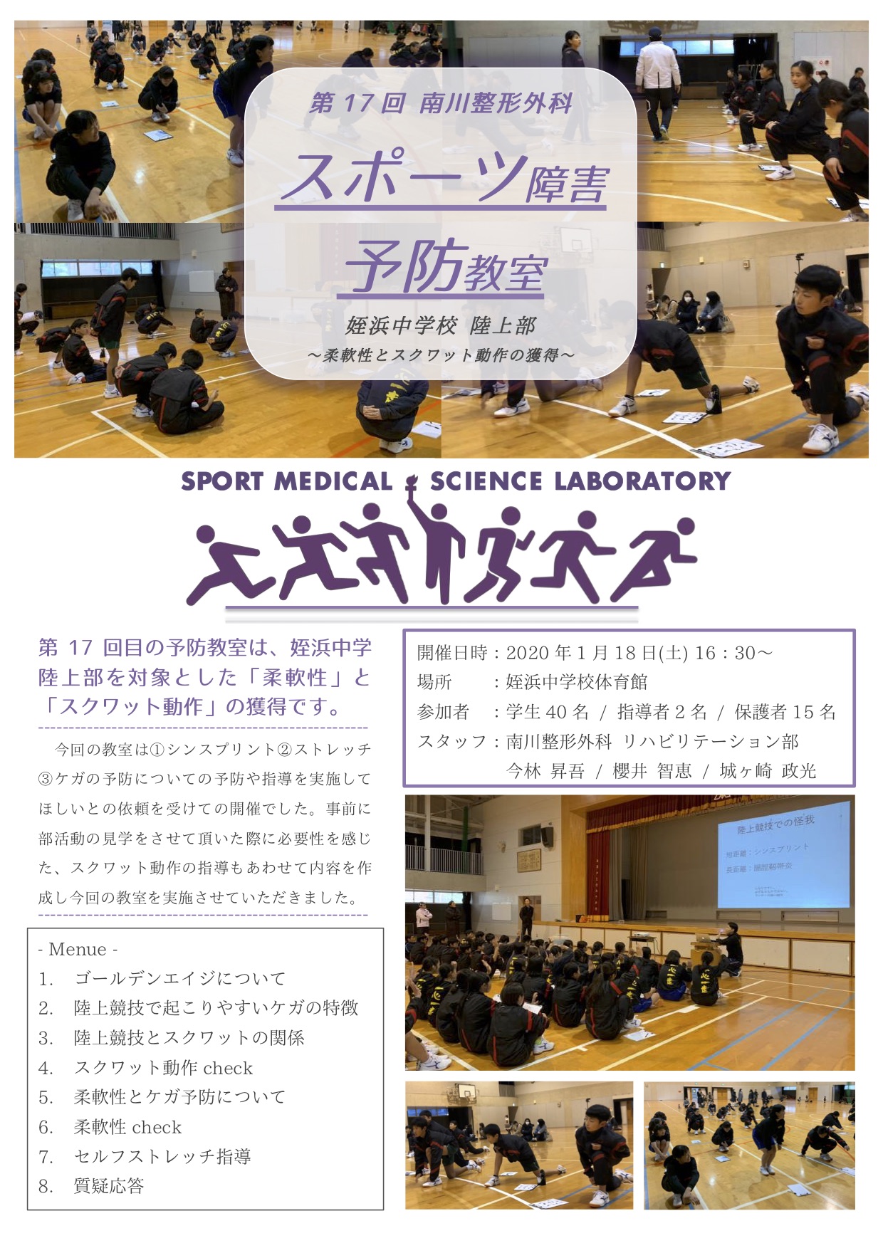 【スポーツ障害予防教室】第17 スポーツ障害予防教室 事前見学 (姪浜中学校 陸上部)(475.59Kb)